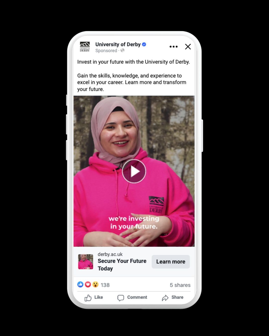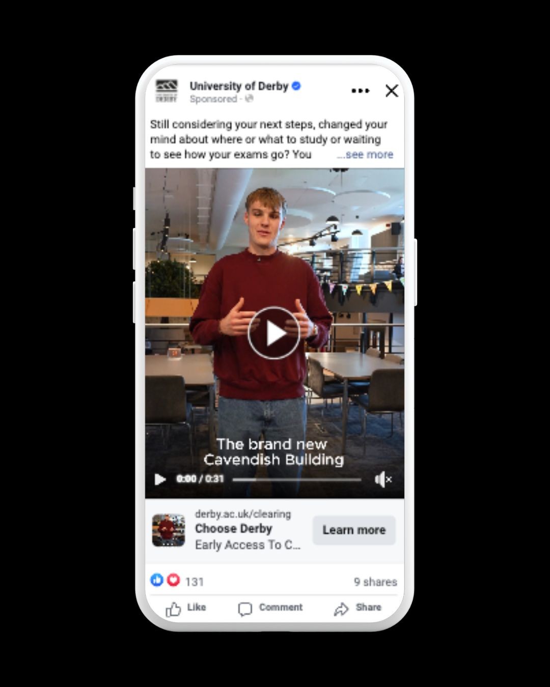 The Clearing 2024 campaign strengthened the University of Derby’s position as a confident, student-focused institution during a critical recruitment window. Prospective students encountered clear, supportive messaging that helped them move from uncertainty to action.
